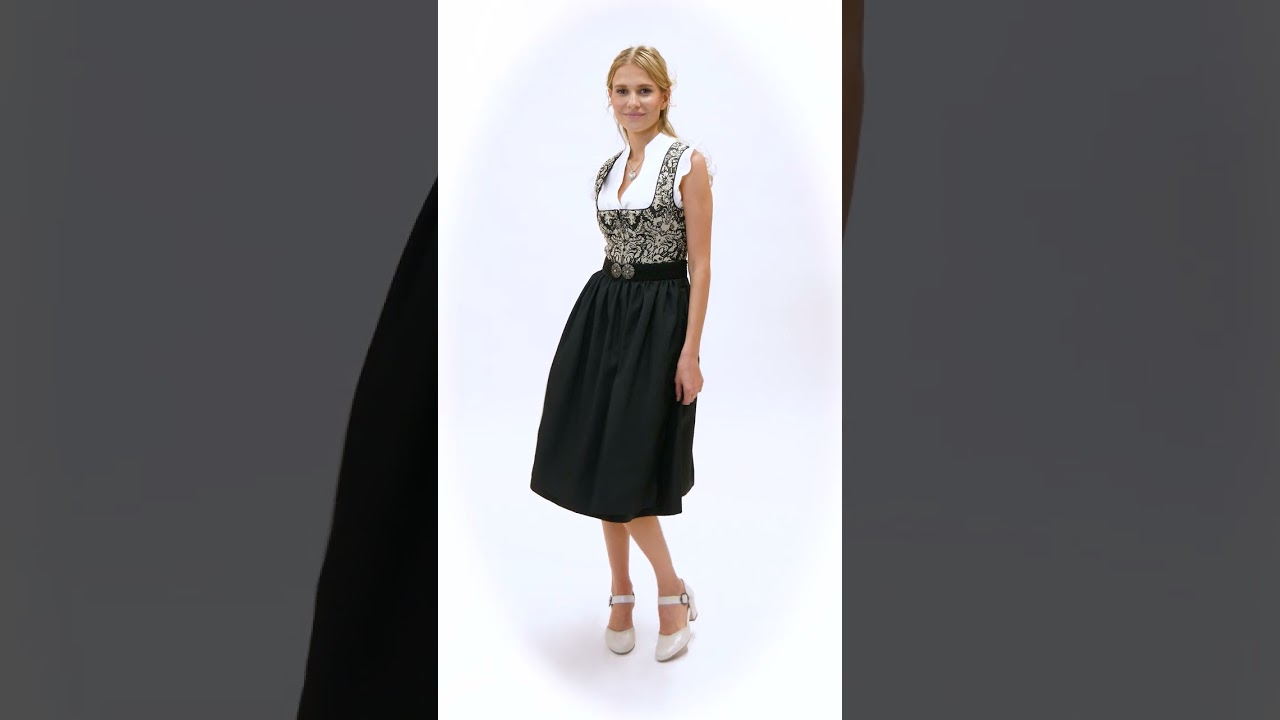 Das Midi-Dirndl "Schöfweg" von Marjo vereint klassische Eleganz mit einem Hauch von Romantik. In edlem Schwarz gehalten, strahlt dieses Dirndl zeitlose Schönheit aus. Das Mieder ist mit einem zarten floralen Muster verziert, das dem Dirndl eine feminine und raffinierte Note verleiht. Der Schnitt betont die Figur und sorgt für eine anmutige Silhouette. Ideal für festliche Anlässe und Trachtenfeste, ist das Dirndl "Schöfweg" die perfekte Wahl für alle, die Tradition und Stil auf elegante Weise verbinden möchten.