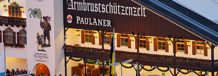 Beside a multitude of smaller tents, the Munich Oktoberfest features 14 full-sized beer tents. In addition to those run by the city’s traditional breweries, there is a wine tent (Weinzelt) and one specialising in fish (Fischer Vroni). Käfer’s Wiesn-Schänke is where the great, the good, and the glamourous go to meet. Find out more about each tent by clicking on it in the map below.
