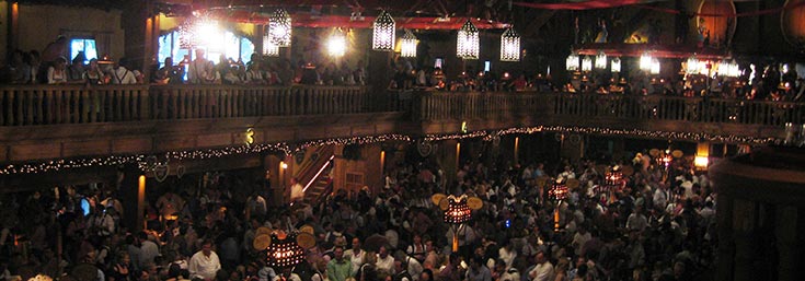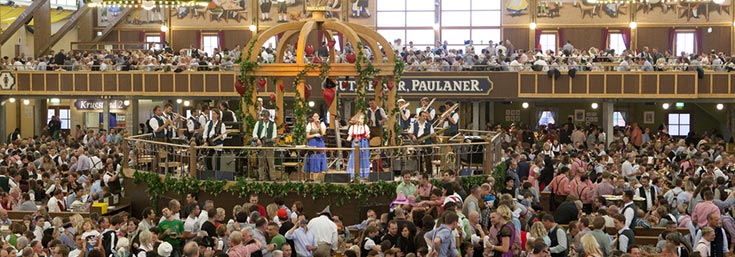 Getting a seat in a tent is important if for no other reason than that it’s the only way to get a tankard of beer; there are very few areas in which a Mass can be ordered standing up. If you don’t have a reservation, the best strategy is to get into a tent as early as possible. Once the party has really got going, it can be very difficult to find any free spaces, and tents generally fill up by 10am latest on the weekends (during the week, things are quieter through until the afternoon). As a general rule, smaller groups have better chances of getting a seat than larger ones. Once tents are at capacity, the doors are shut and security guards count people out and in.